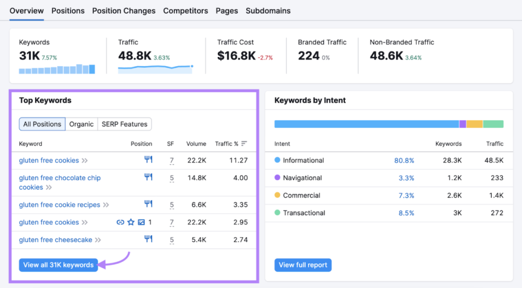此预测可以帮助您大致了解,如果您的所有关键词在Google 搜索结果中排名前三,您可以获得多少流量。但您需要采取正确的步骤来优化您的内容,以便能够获得前三的排名。
